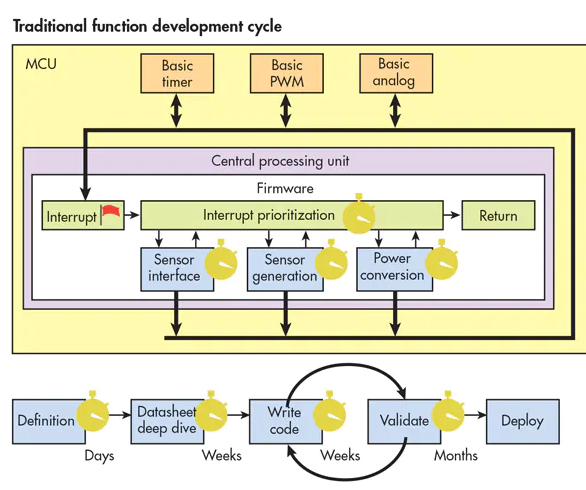 2. 傳統的嵌入式設計非常以軟件為中心,嵌套的軟件例程需要進行全面的驗證工作以確保正常運行。必須考慮時序突發事件、中斷優先級和系統延遲。