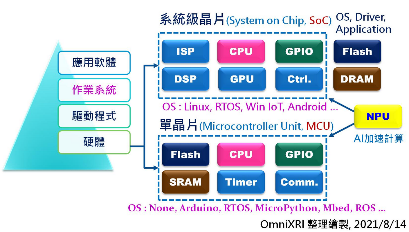 嵌入式系統SoC及MCU差異比較圖(OmniXRI整理圖,2021/8/14)