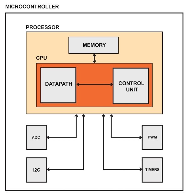 CPU 執行算術運算,管理數據流,并根據程序員創建的指令序列生成控制信號。設計人員看不到 CPU 功能所需的極其復雜的電路。事實上,得益于集成開發環境和 C 等高級語言,為微控制器編寫代碼通常是一項相當簡單的任務。