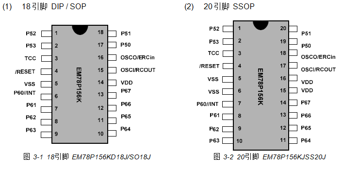 · 18引腳SOP 300mil : EM78P156KSO18J
