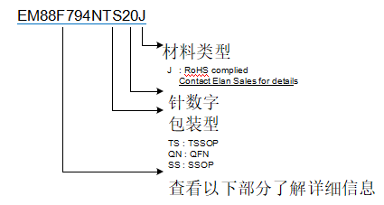 例如: EM88F794NTS20J EM88F758NTS20J 帶閃存程序存儲器,工業(yè)級產(chǎn)品,采用 20 引腳 TSSOP 封裝,符合 ROHS
