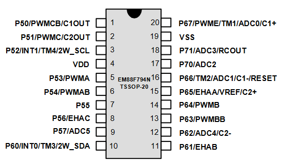 Figure 3-1 EM88F794N TSSOP-20 Pin Assignment