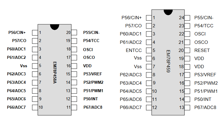 EM78P458A/459引腳配置