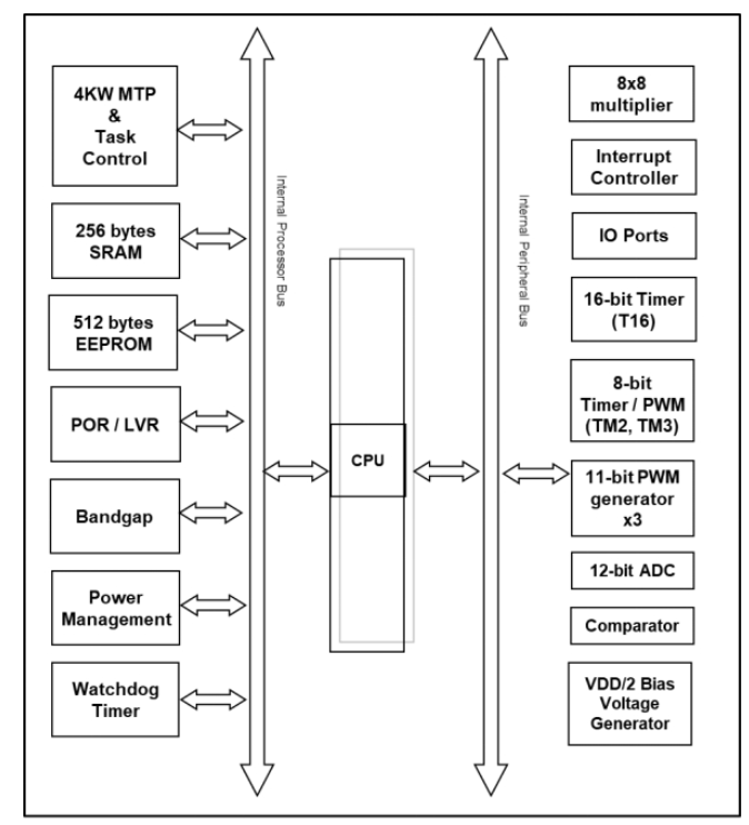 內(nèi)部最多達(dá) 4KW MTP 程序存儲(chǔ)器、512 字節(jié) EEPROM 以及 256 字節(jié)數(shù)據(jù)存儲(chǔ)器,還有多達(dá) 14 通道 12 位