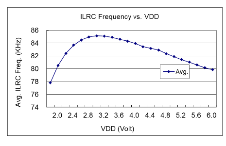 ILRC 頻率與 VDD 關(guān)系曲線圖