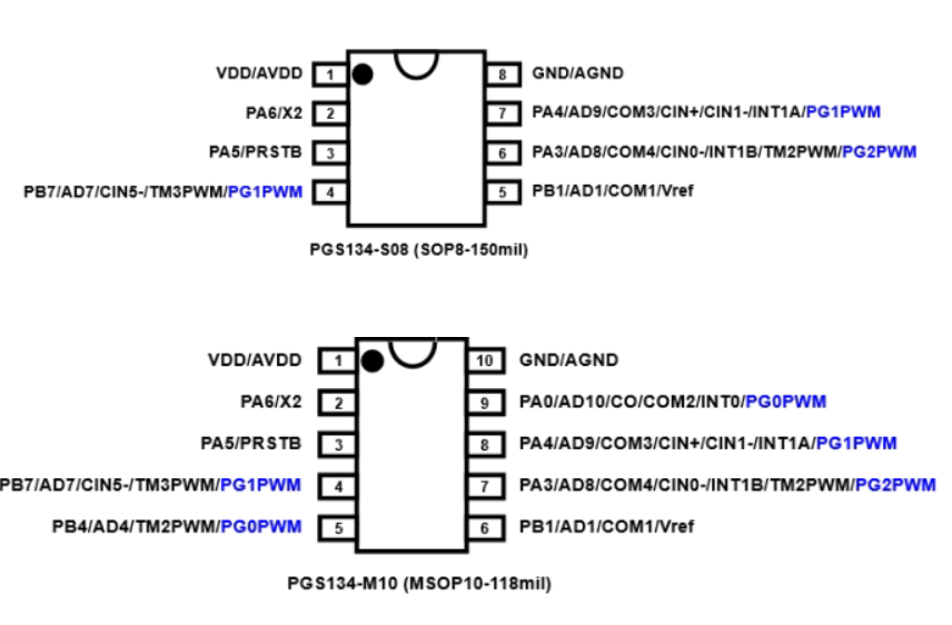 PGS134 系列是一款帶 12bit ADC,以 MTP 為程序基礎(chǔ)的 CMOS 8-bit 微處理器。它運(yùn)用 RISC 的架構(gòu)并且