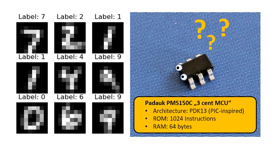 是否也可以在 PMS150C 上實現(xiàn)可以對手寫數(shù)字進行分類的 MNIST 推理引擎?當(dāng)談到絕對低端微控制器時,幾乎沒有比 Padauk 8 位微控制器更引人注目的目標(biāo)了