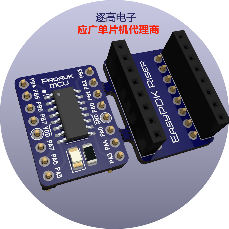 逐高電子是應廣科技官方(PADAUK)授權一級代理表內型號均常備庫存,低功耗設計,VDD在3 . 3V時休眠電流0 . 5uA,快速喚醒僅需128個時鐘周期