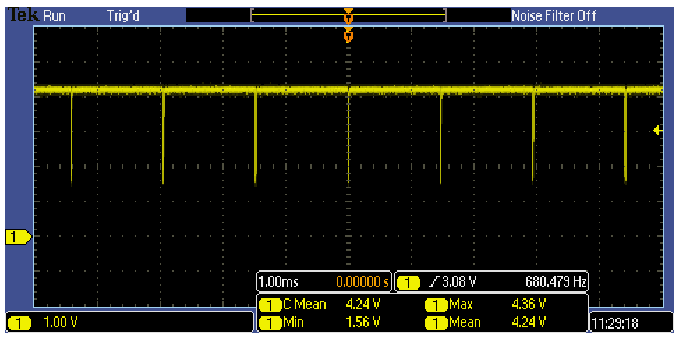 導(dǎo)致電壓表量到較低的電壓值。Vbat 電壓波形如下圖波形