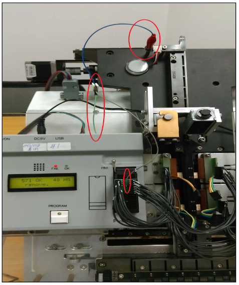 (1) 共地:將燒錄排線的隔離地線與燒錄器的地及半自動機臺的滑軌共接地。