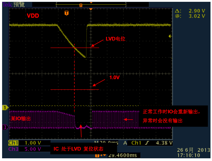 被手動快速開關,或者是因為強烈的電源雜訊),而且恰巧電源 VDD 在下降至低于 LVD 電位但