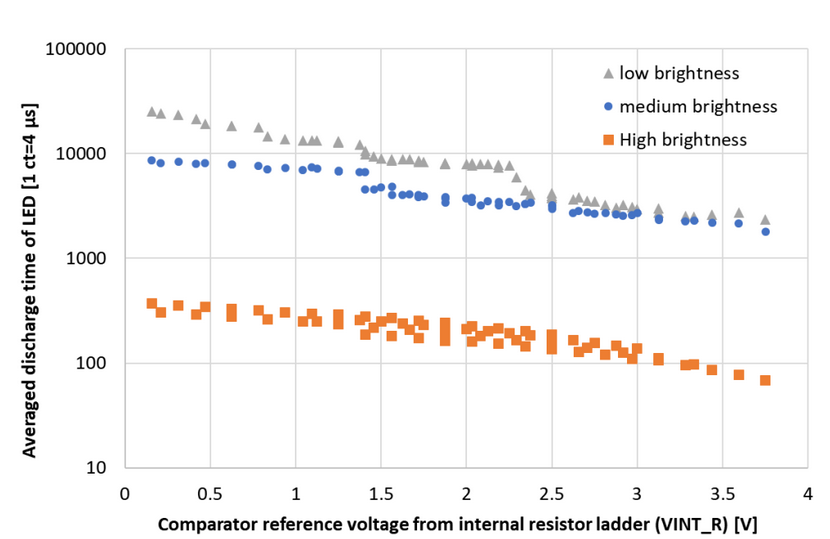 一種比較可靠的方法是使用內部 LED 電容作為單斜率積分 ADC 中的電流積分器。實際上,這是通過首先將 LED 反向偏置充電至固定電壓(例如 VDD)來實現的,讓輸出浮動,然后監控電荷消失需要多長時間。從 dQ=C*dV 和 dQ=Iphoto*dt 可知 Iphoto=C*dV/dt。因此,LED 中產生的光電流與電壓降低到固定閾值所需的時間成反比。