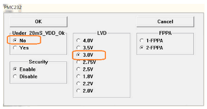 在低壓時(shí)就執(zhí)行高速開機(jī),造成誤動(dòng)作。這時(shí)需要設(shè)置 (Under_20mS_VDD_Ok = NO)。