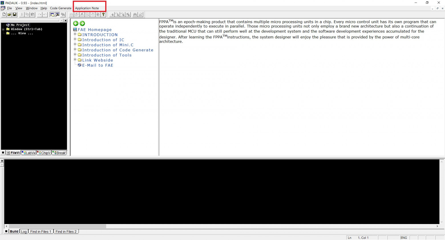 啟動(dòng)IDE。最后一個(gè)項(xiàng)目或文件打開(kāi),如果我們第一次運(yùn)行,應(yīng)用程序注意也可以從頂部面板獲得。以下是處理器命令上的文檔,mini.C編程語(yǔ)言的描述,代碼生成器的描述。